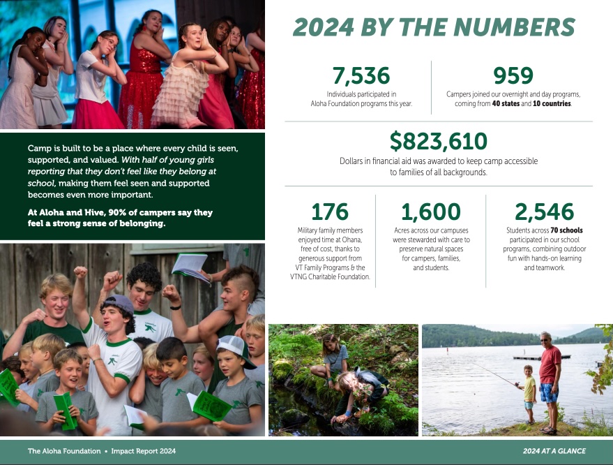 And though some of you, our alumni and camper parents, may not be up on the stage, your role in this story is vital. Your belief in what we do, and your place in this community—whether newly joined or deeply rooted—help bring our mission to life. It’s all here in the 2024 Impact Report.